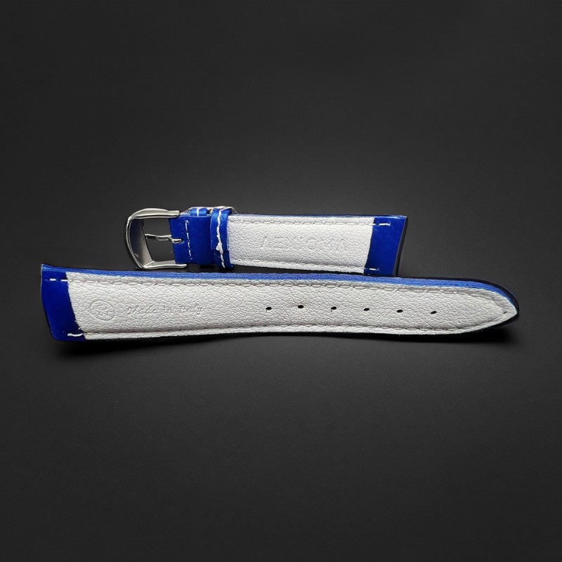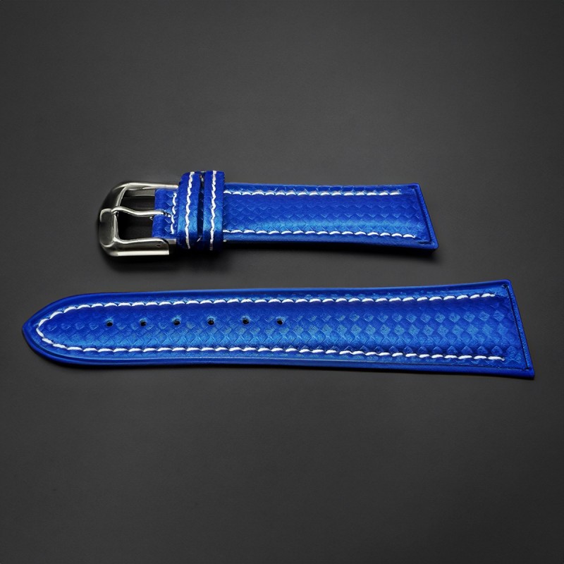 Cinturino in vera pelle Made in Italy, comodo e resistente. Modello in carbonfibra con tripla imbottitura a scalare. Colore: blu.
