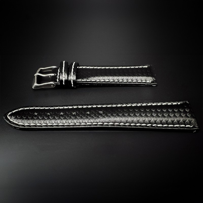 Cinturino in vera pelle Made in Italy, comodo e resistente. Modello in carbonfibra con tripla imbottitura a scalare. Colore: nero.