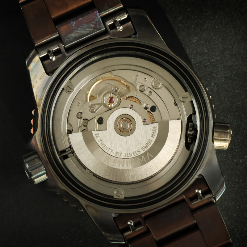 Il modello Aenigma MonteBianco SBMB001 nasce dall’incontro tra forza tecnica e stile senza tempo. Con la sua cassa in acciaio 316L da 42 mm e il movimento automatico Swiss Made Sellita SW200, questo segnatempo unisce precisione e affidabilità assoluta. Il vetro zaffiro protegge un quadrante essenziale e leggibile, mentre gli indici applicati con SuperLuminova BGW9 garantiscono visibilità anche nelle condizioni più estreme.