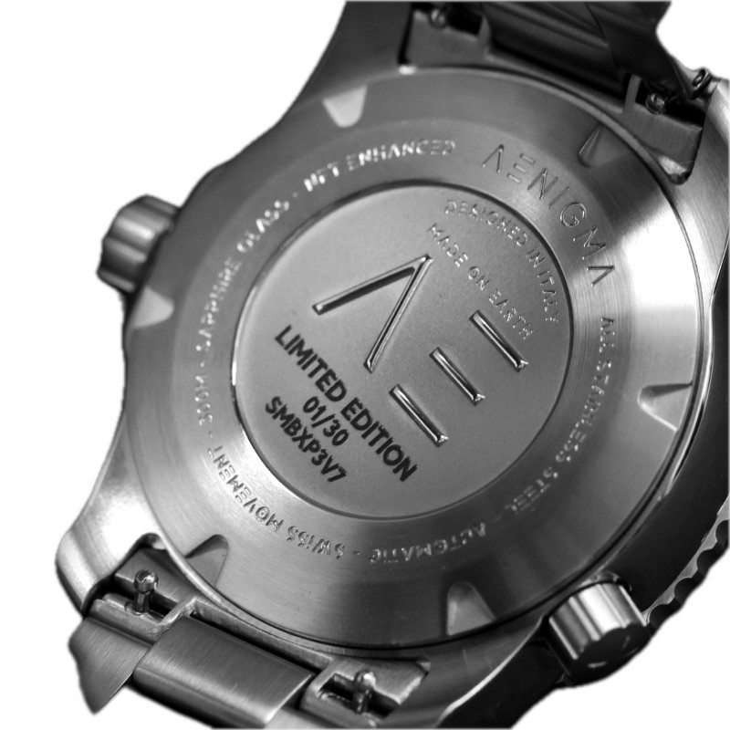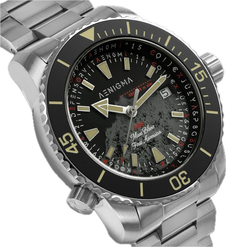 Il modello Aenigma MonteBianco SBMB003 nasce dall’incontro tra forza tecnica e stile senza tempo. Con la sua cassa in acciaio 316L da 42 mm e il movimento automatico Swiss Made Sellita SW200, questo segnatempo unisce precisione e affidabilità assoluta. Il vetro zaffiro protegge un quadrante essenziale e leggibile, mentre gli indici applicati con SuperLuminova BGW9 garantiscono visibilità anche nelle condizioni più estreme.