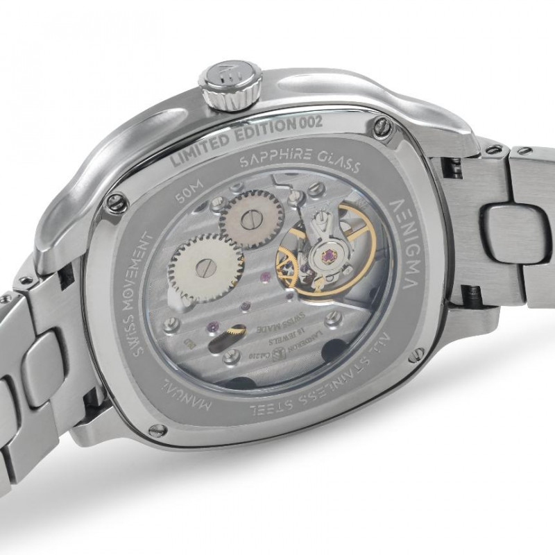 Il DRESSX è un orologio per chi apprezza la precisione artigianale e desidera distinguersi con discrezione. Il suo design minimalista ma deciso, impreziosito dai numeri arabi e dal logo Aenigma centrale, ne fa un segnatempo versatile, adatto sia a look formali che casual.