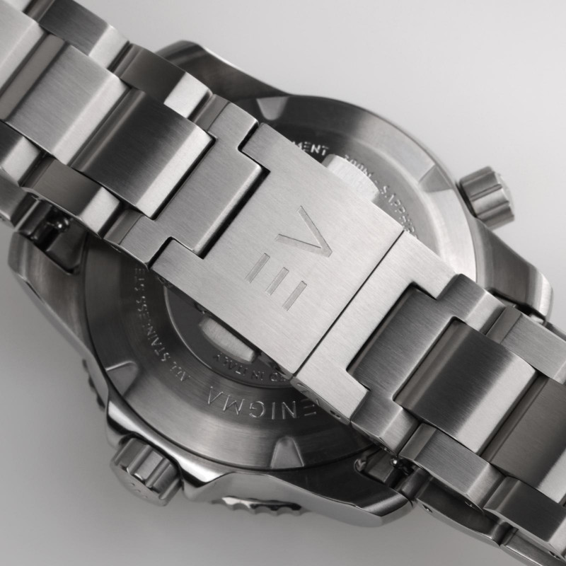 Equipaggiato con movimento automatico Swiss Made Sellita SW200, offre precisione e solidità meccanica, completato da un bracciale in acciaio con chiusura deployante.